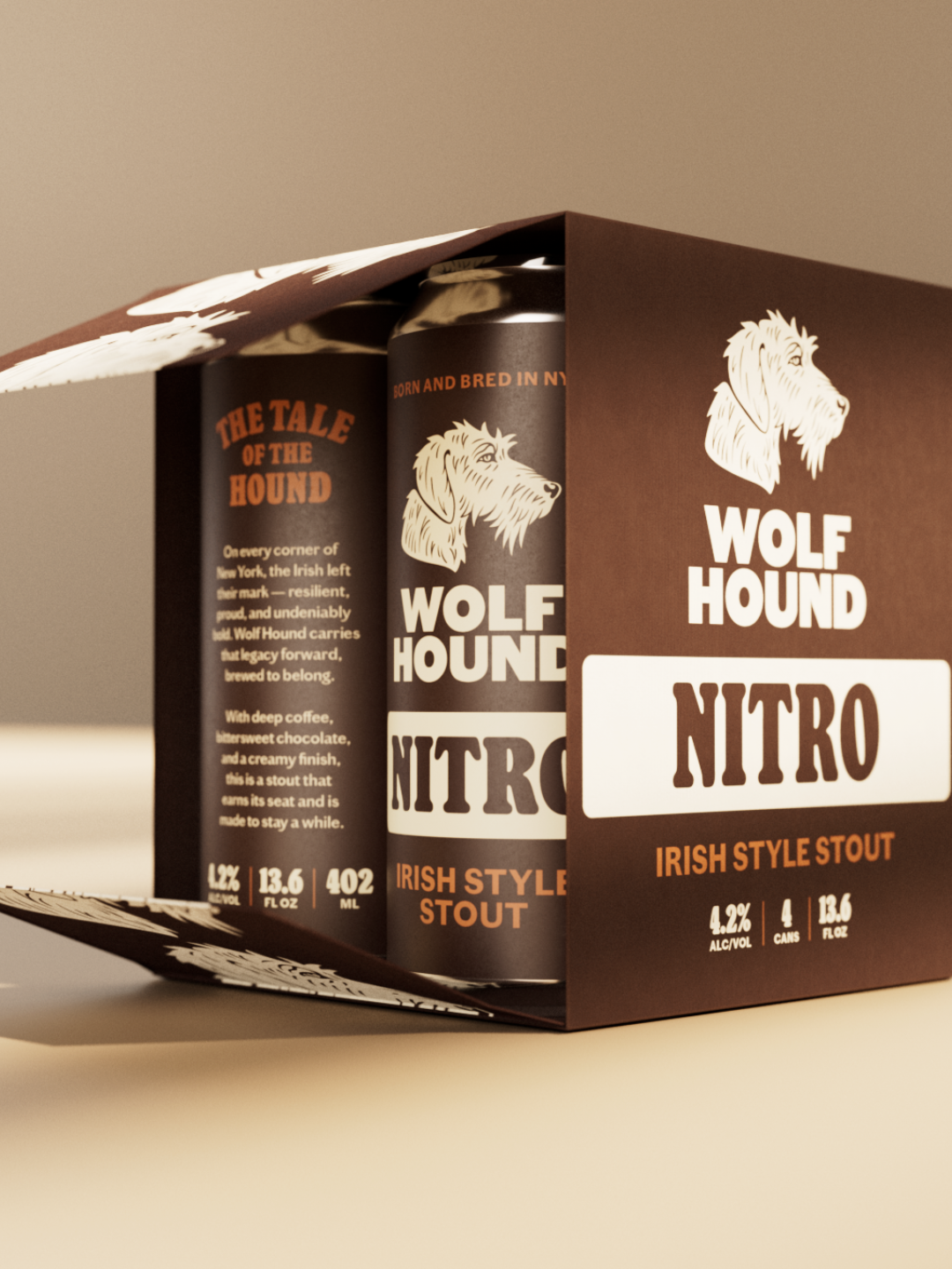 After years of perfecting their nitro beers, the Wolf Hound team from The Flagship Brewing Company needed an identity that could secure taps across New York City, from those at historic Irish pubs to high-end bars. Winning over pub owners, taproom curators and other formidable gatekeepers was the next challenge.